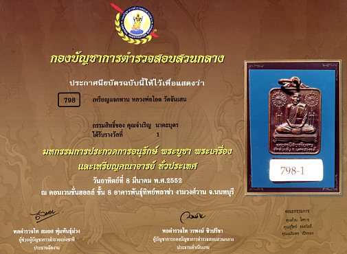 เหรียญพ่อโอดวัดจันเสน พร้อมใบประกาศแชมป์ 12 ใบ |