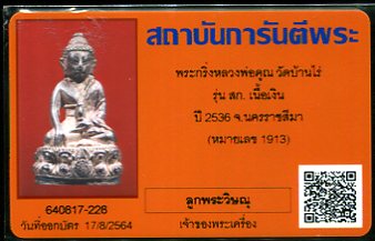 | กริ่ง ส.ก. เนื้อเงิน พ่อคูณ วัดบ้านไร่ ใบการันตี |