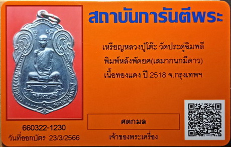 ภาพเพิ่มเติม เหรียญเสมามีใบรายงานผล