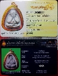 พระปิดตารุ่นนี้สาเหตุที่เรียกว่ารุ่น"ปลดหนี้" เพราะว่าเวลาหลวงปู่หยิบพระพิมพ์นี้ให้ใครท่านจะกล่าวให้พรว่า "ขอให้หมดหนี้หมดสินนะ" และเป็นจริงอย่างที่หลวงปู่ท่านกล่าว หลวงปู่โต๊ะได้เมตตาปลุกเสกให้นานถึง 3 ไตรมาส ปี 2521-2523 ***พระเครื่องของพระอริยสงฆ์ที่อุทิศตนบำเพ็ญเพียรอย่างเคร่งครัดสม่ำเสมอ มีวัตรปฎิบัติที่งดงามมาตลอดชีวิตที่อยู่ในร่มกาสาวพัสตร์ เรื่องพระพุทธคุณศตกมลคงไม่ต้องบรรยาย หากผู้บูชาเป็นผู้ประพฤติตนดีตามคำสั่งสอนของหลวงปู่ กตัญญูรู้คุณ จะพบกับโชคลาภ เมตตา และแคล้วคลาด อย่างไม่ต้องสงสัย นับเป็นพระปิดตาที่หลวงปู่ใช้เวลาปลุกเสกยาวนานที่สุดถึง3ไตรมาส ซึ่งไม่เคยปรากฎว่า มีพระปิดตารุ่นใดที่หลวงปู่ปลุกเสกนานไปกว่านี้เลย ( ขอขอบพระคุณข้อมูลการสร้างจากหนังสือคุณประสิทธิ์ ปริชาน ) ............. องค์ที่นำลงในชมรม เป็นเนื้อผงใบลานหลังยันต์ตรีแช่น้ำมนต์ บรรจุตะกรุดเงิน 1 ดอก มีเส้นเกศา 7 เส้น (เหนือตะกรุด 6 เส้น ที่ข้อมือขวา 1 เส้น ) พระผิวเดิม เนื้อเกินด้านหลังสมบูรณ์ ไม่มีอุดซ่อม นิ้วมือชัด เห็นกำไลข้อเท้า ตัวหนังสือด้านหลังชัด พระดูง่ายมากๆ เลี่ยมทองพร้อมแขวนบูชา .........ส่งออกบัตรรับรองให้แล้ว รอเช็ค%ทอง *****( สำหรับพระปิดตาปลดหนี้หลังยันต์ตรี สภาพนี้จัดว่าสวยแล้ว เพราะส่วนใหญ่พระพิมพ์นี้ จะกดพิมพ์ได้ไม่สวย เนื้อพระมักแตกรานมาก ยันต์หลังมักจะกดพิมพ์ไม่ติด และไม่ค่อยเห็นนิ้วมือ)