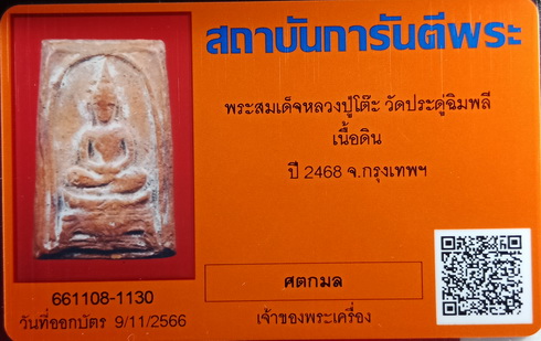 พระสมเด็จเนื้อผงผสมชานหมาก หลวงปู่โต๊ะ ปี 2468
