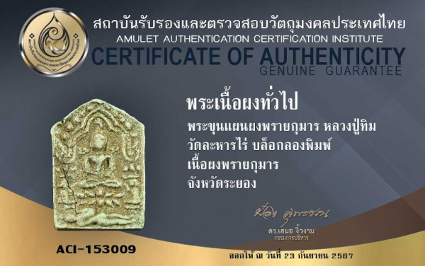พระขุนแผนผงพลายกุมาร หลวงปู่ทิม วัดละหารไร่