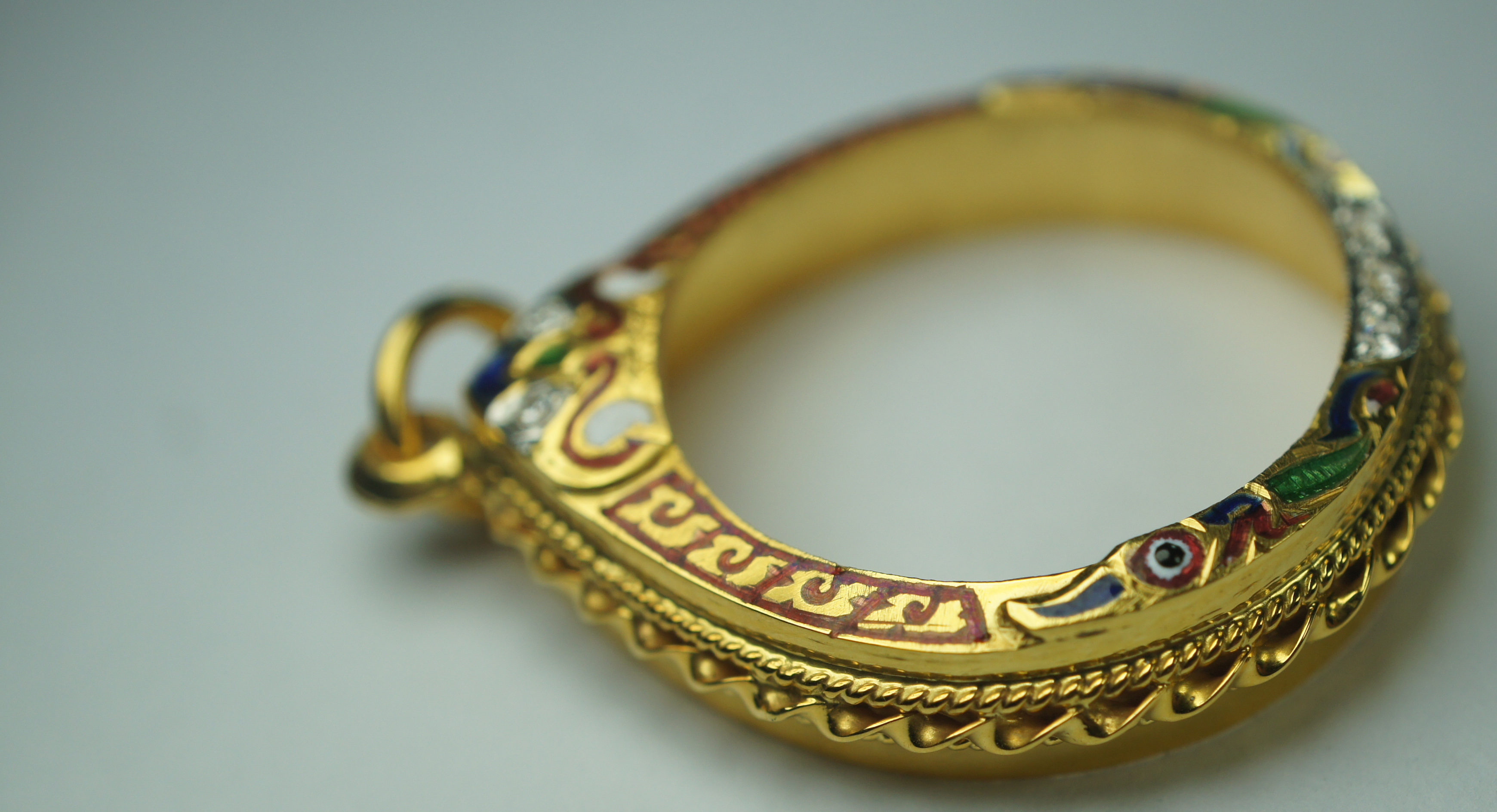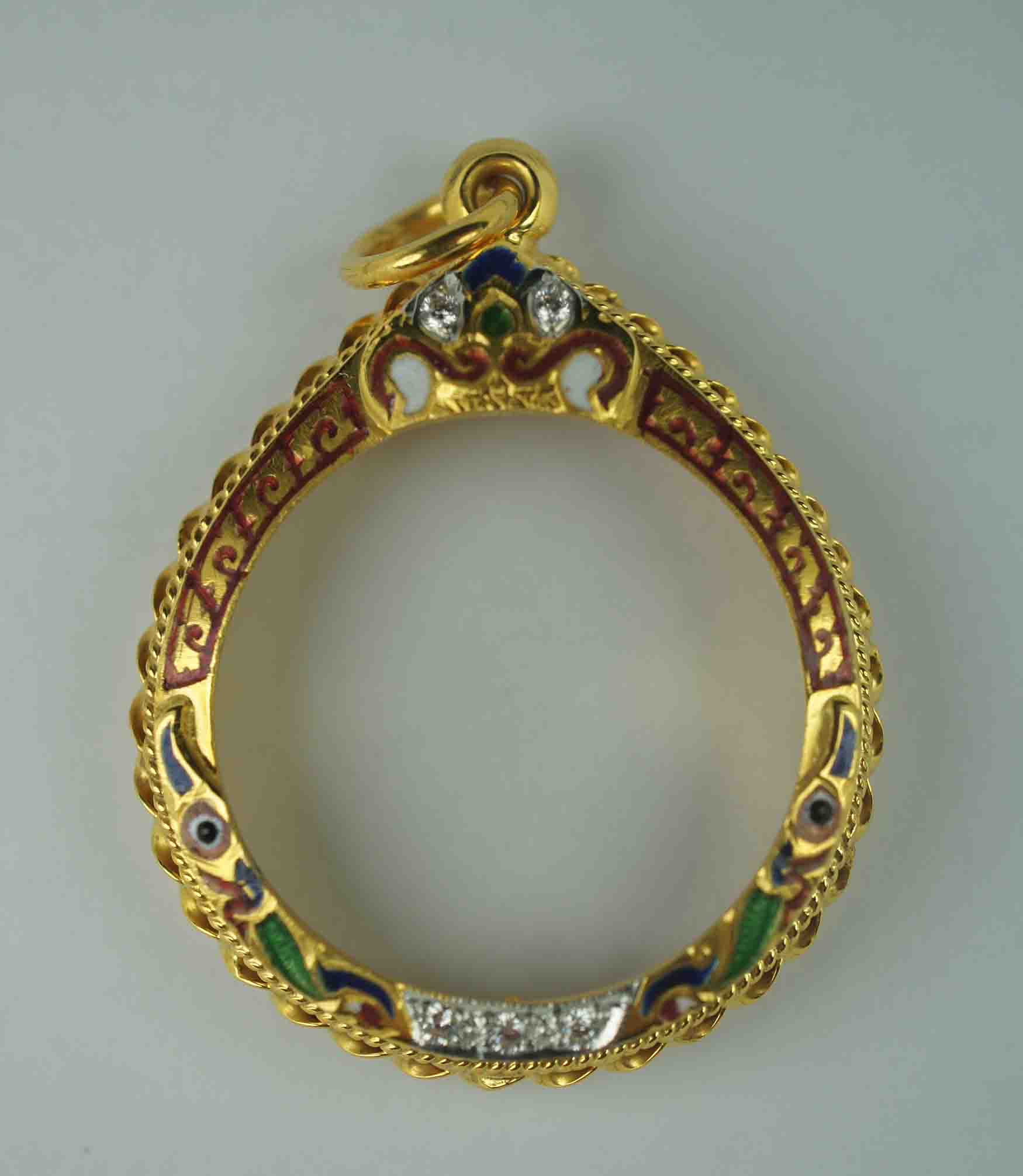 กรอบทองคำ ลงยา ยกซุ้ม หัวสิงห์ ฝังเพชร ข้างเกลียวโ