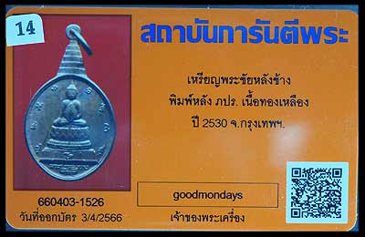 เหรียญพระชัยหลังช้าง เนื้อทองเหลือง ปี2530 หลวงพ่อ |