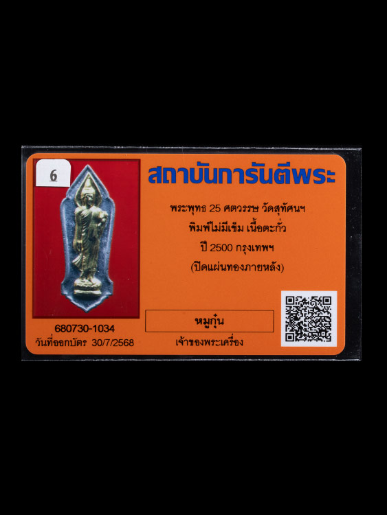 พระพทธ 25 ศตวรรษ วัดสุทัศนฯ พิมพ์ไม่มีเข็ม เนื้อตะกั่ว ปี 2500 กรุงเทพฯ หน้ากากทองคำ สวยๆ พร้อมบัตรรับรองจาก G-Pra