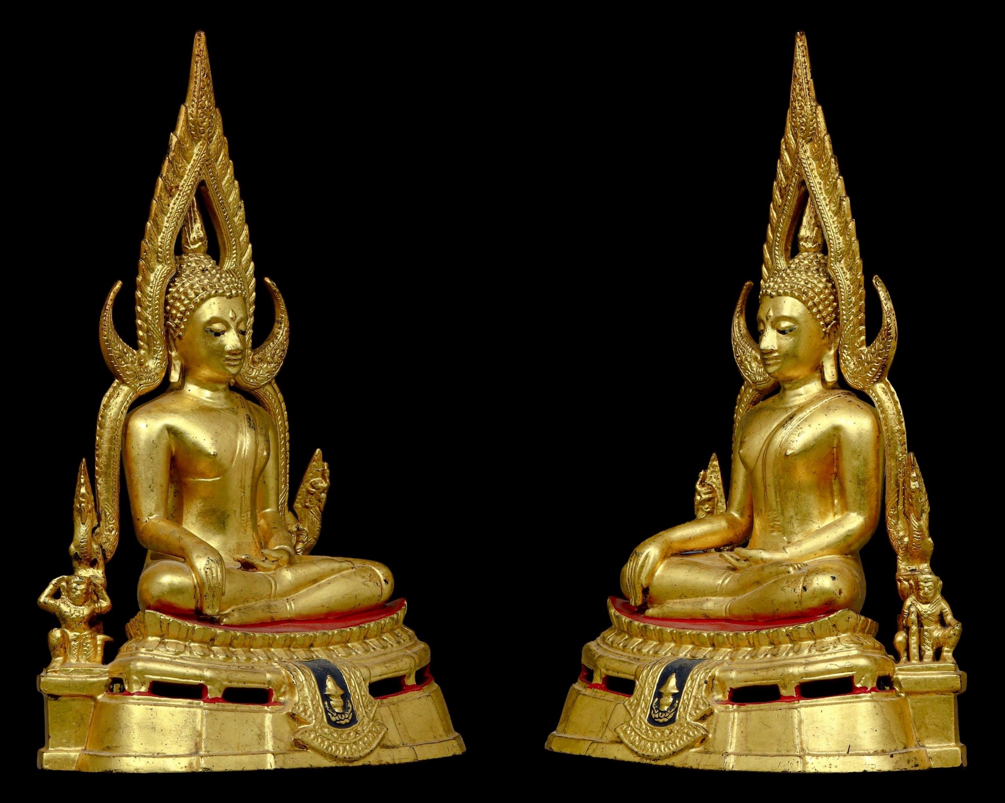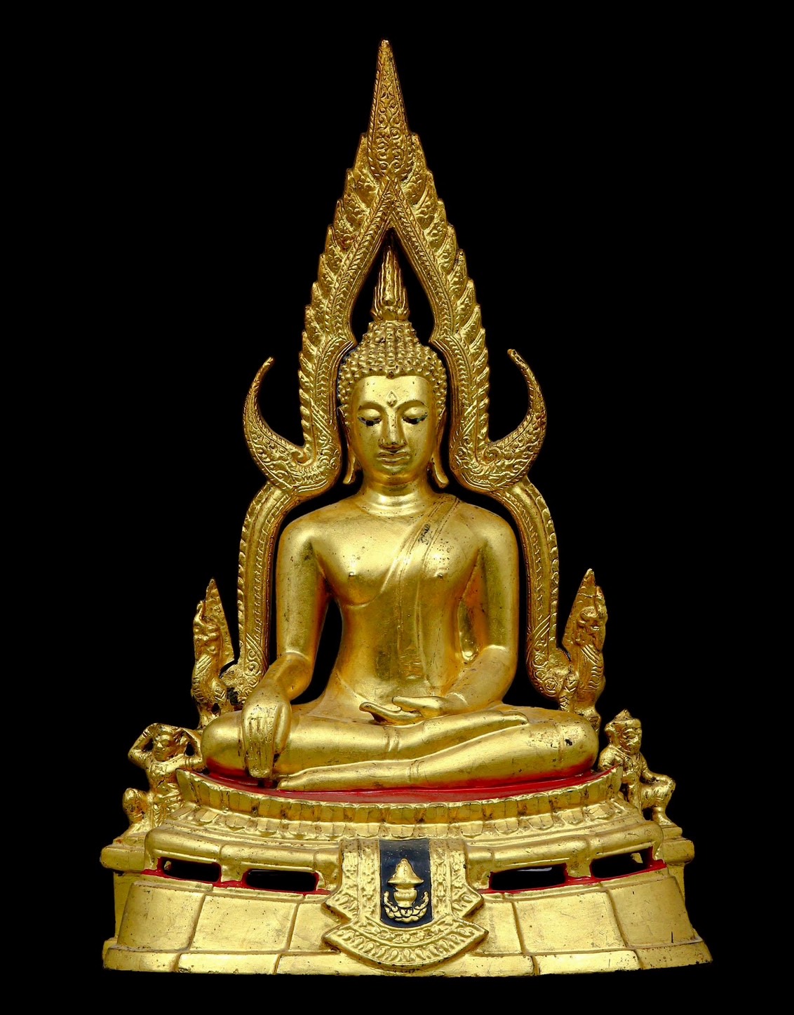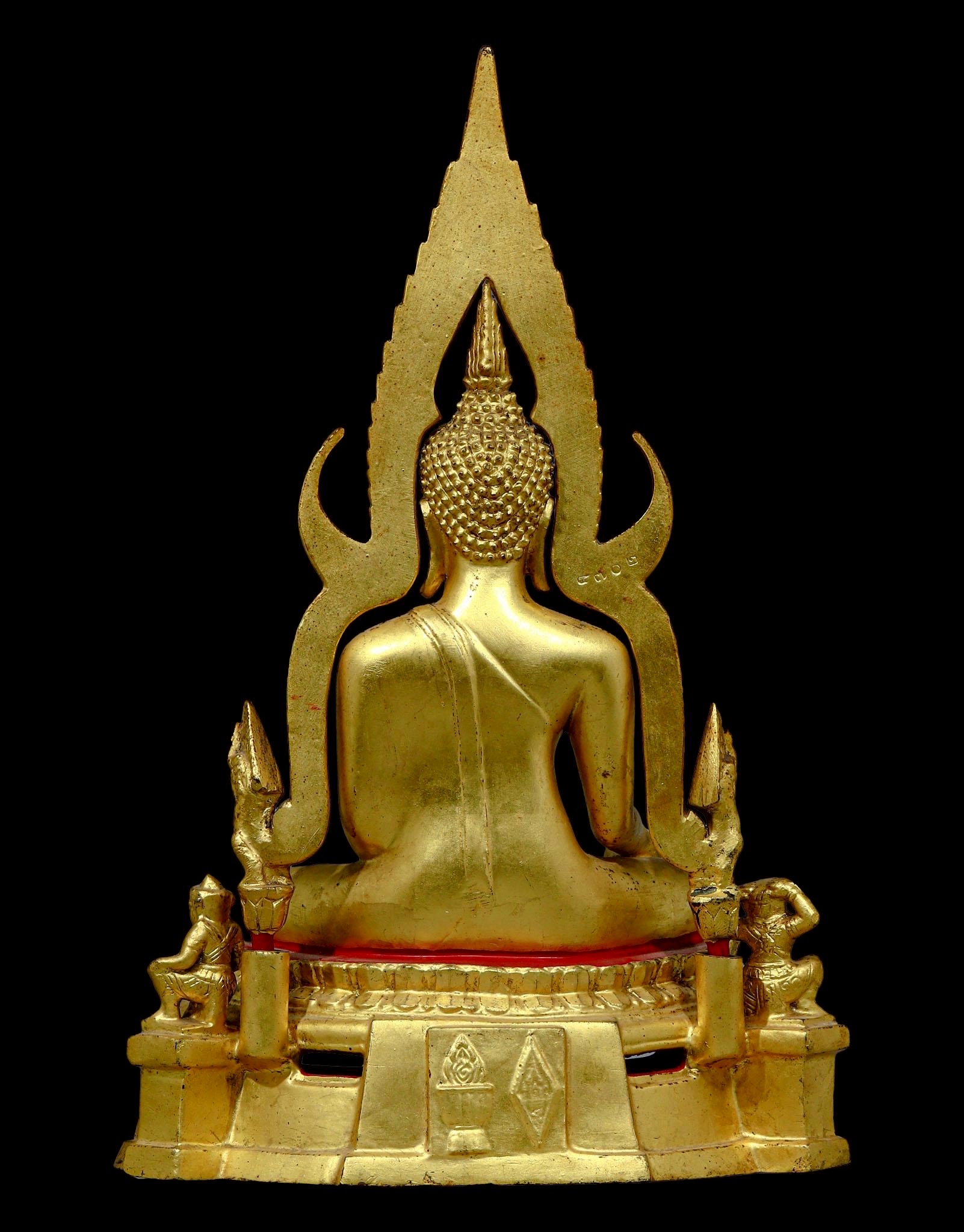 พระพุทธชินราชมาลาเบี่ยง ปี 2520 วัดพระศรีรัตนมหาธาตุวรมหาวิหาร จ.พิษณุโลก ขนาดหน้าตัก 5.9 นิ้ว สูง 15 นิ้ว ฐานกว้าง 9 นิ้ว 2 ถอด(ซุ้ม) เนื้อโลหะผสมปิดทองเดิม เลข๔๗๐๒