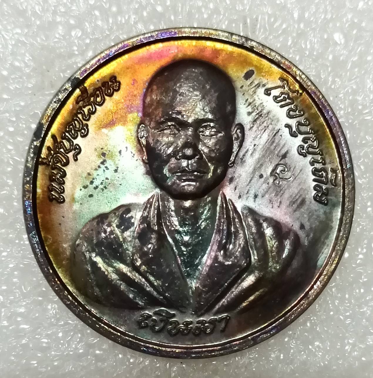 เหรียญเงินมา แม่ชีบุญเรือน วัดอาวุธ ปี๕๔ ผิวไฟ