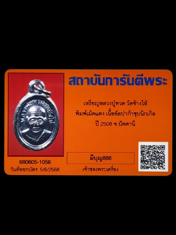 เหรียญเม็ดแตง หลวงปู่ทวด ปี 2508 เนื้ออัลปาก้าชุบนิกเกิ้ล บล็อคธรรมดา พระสวยผิวเดิม นิกเกิ้ลเต็ม พระไม่ได้ใช้ เรื่องพุทธคุณไม่ต้องพูดถึงค่ะ พระหลวงปู่ทวด สุดยอดพระนิรันตราย มาพร้อมบัตรรับรองค่ะ