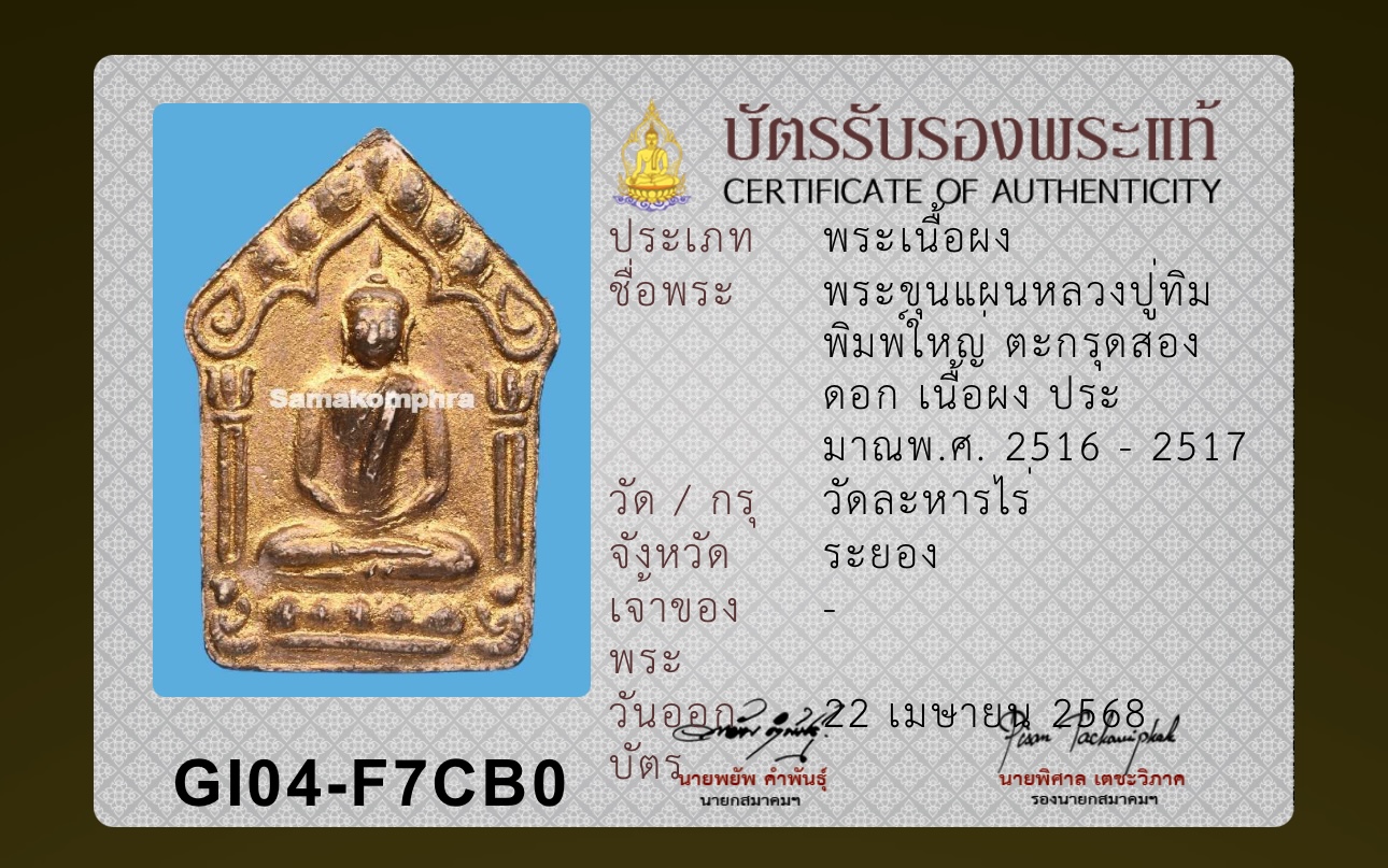 พระขุนแผนหลวงปู่ทิม วัดละหารไร่ บล็อกสอง ตะกรุดคู่