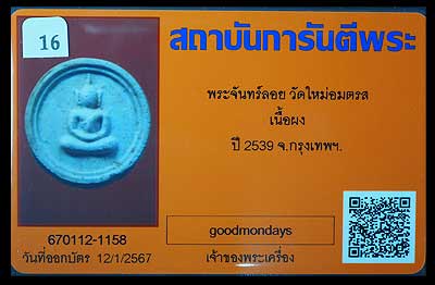 สมเด็จบางขุนพรหม ปี2539 พิมพ์จันทร์ลอย |