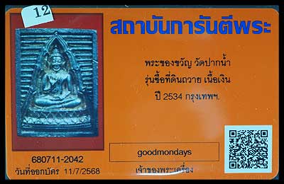 พระของขวัญ เนื้อเงิน รุ่นซื้อที่ดิน ปี2534 วัดปากน |