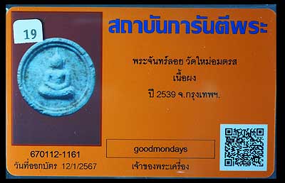 สมเด็จบางขุนพรหม ปี2539 พิมพ์จันทร์ลอย |
