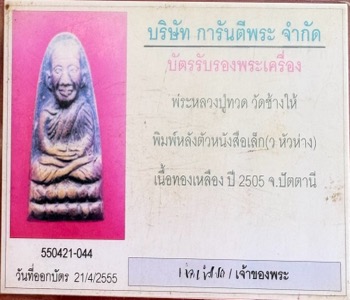 หลวงปู่ทวด พิมพ์หลังตัวหนังสือเล็ก ปี 05