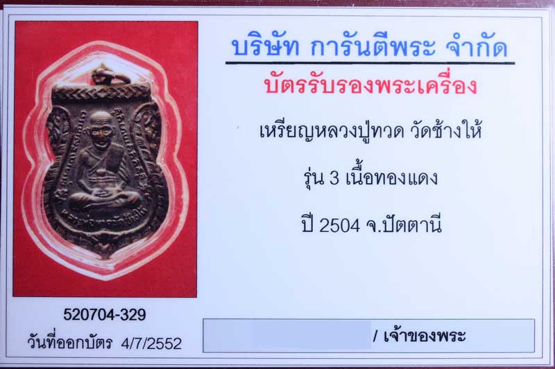 เหรียญหลวงปู่ทวดรุ่นสาม พิมพ์เสมา ปี2505 มีสร้างขึ้นมากกว่า 20 พิมพ์ สำหรับพิมพ์นี้คือพิมพ์ไม่มีจุด เป็นพิมพ์ที่หายากอีกพิมพ์หนึ่งไม่ค่อยมีออกมาให้เห็น ส่วนใหญ่จมูกจะแบนเพราะแผ่นทองแดงที่นำมาปั๊มบางเกินไปทำให้ไม่ติดจมูก สภาพนี้สำหรับพิมพ์นี้ถือว่าสวยแล้ว