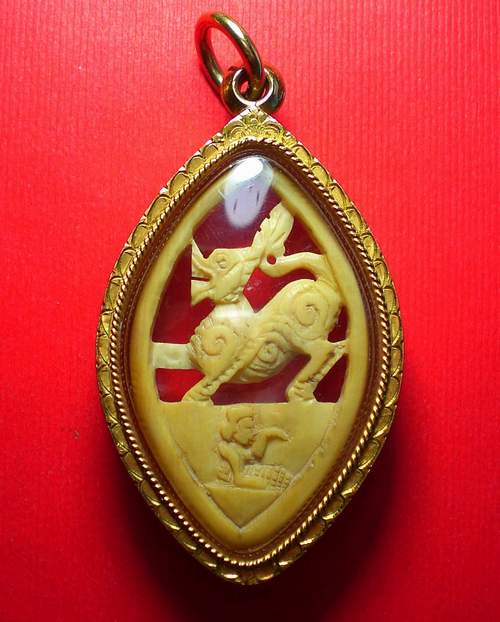 สิงห์งาแกะอีกฟอร์มครับ ด้านล่างเป็นนางกวัก อีกด้านเป็นวัวครับ ดูง่ายงาเก่าถึงยุคครับ
