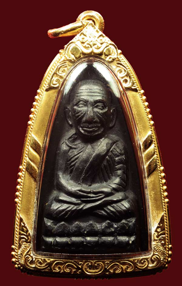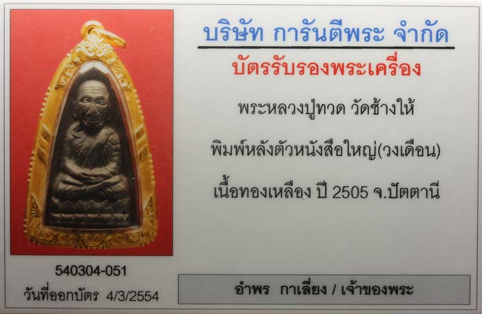 หลวงปู่ทวดพิมพ์หลังหนังสือพิมพ์ใหญ่ ปี2505 บล็อควงเดือน เลี่ยมทองหรู สภาพไม่ผ่านการใช้ ด้านหลังมีคราบจากการเก็บ ไม่ใช่รมดำใหม่แน่นอน