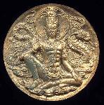 | จตุคามขุมทรัพย์สี่แผ่นดิน๓.๕ซม.ผงเนื้อพุธคุณปัดทอง |