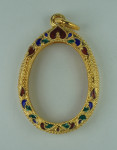 | กรอบทองคำ ทรงกลม ยกซุ้ม หัวสิงห์ ลงยา หน้ายับทราย |