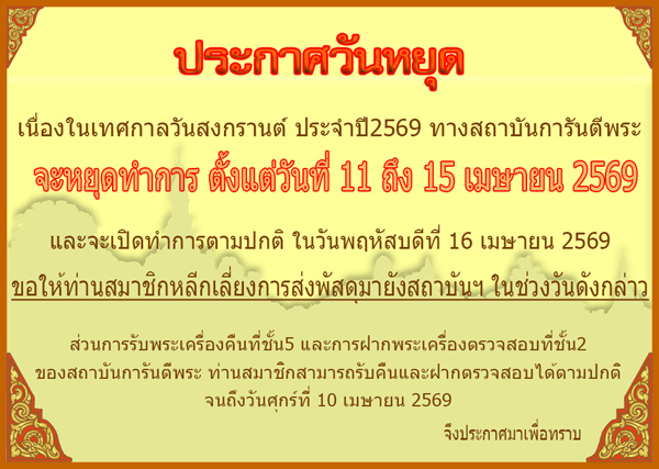 ประกาศวันหยุด เทศกาลสงกรานต์ประจำปี2569