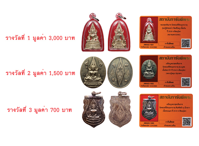 - เพื่อแทนคำขอบคุณนี้ ทางเว็บไซต์ฯ ขอมอบพระเครื่องพร้อมบัตรรับรอง QR Code จำนวน 3 รางวัล ประจำเดือนพฤษภาคม 2569 นี้ให้กับท่านสมาชิกฯ โดยทางเว็บไซต์ฯจะจับสลากจากรายชื่อท่านสมาชิกนิตยสารการันตีพระออนไลน์และสมาชิกพัฒนาเว็บไซต์ฯทุกท่าน ในวันเสาร์ที่ 2 พฤษภาคม 2569 เวลา 16.00 น. และจะประกาศรายชื่อผู้ได้รับรางวัล ที่หน้าเว็บไซต์ฯในวันจันทร์ที่ 4 พฤษภาคม 2569 โดยท่านสมาชิกสามารถรับรางวัลได้ที่สถาบันการันตีพระ ชั้น 1 หรือ แจ้งให้จัดส่งทางไปรษณีย์ได้ทางไลน์แอดที่ @g-pra.payment (24 ชั่วโมง) หรือโทรแจ้งที่เบอร์โทร 02-521-0699 , 02-521-0712 ( ค่าจัดส่ง 150 บาท )