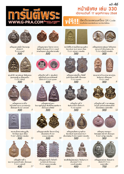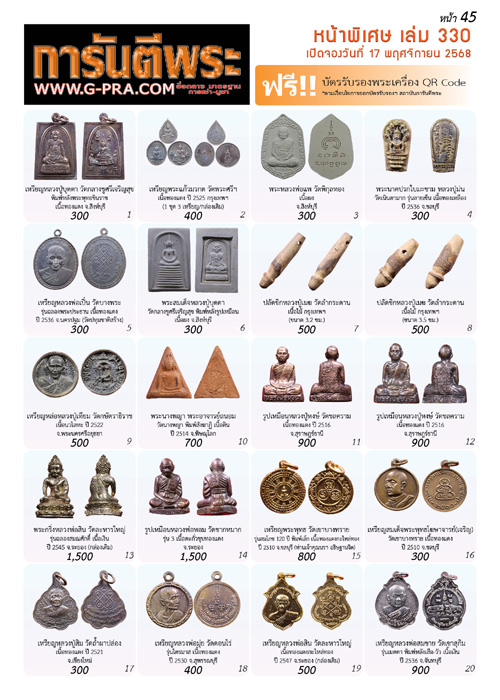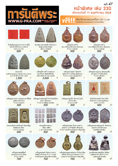 💥ขอเชิญเช่าบูชาพระเครื่องราคาถูกพิเศษ แถม บัตรรับรอง 1 ใบ ** หน้าพิเศษ ( จำนวน 4 หน้า ) ของฉบับที่ 330 https://www.g-pra.com/magazine.php