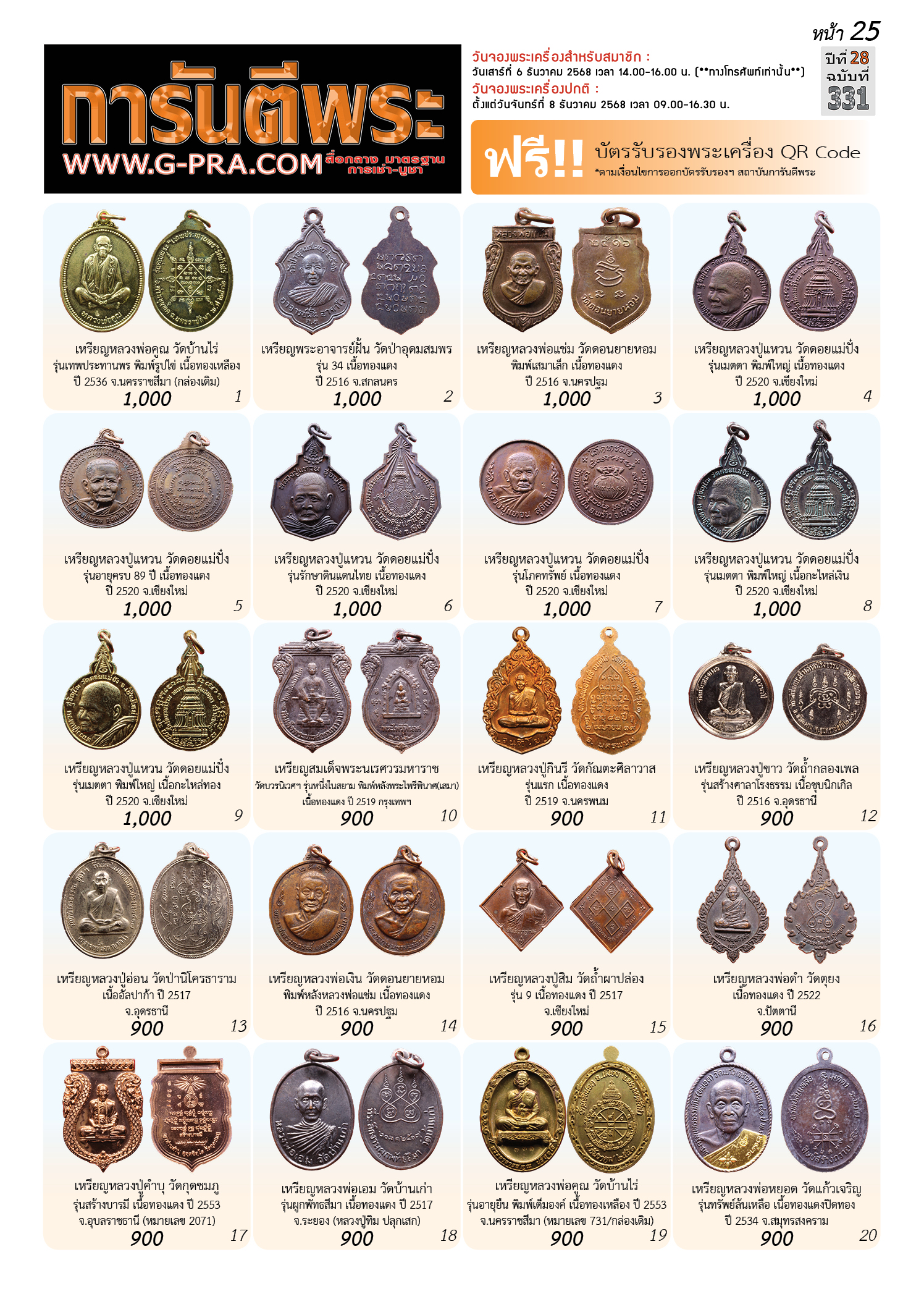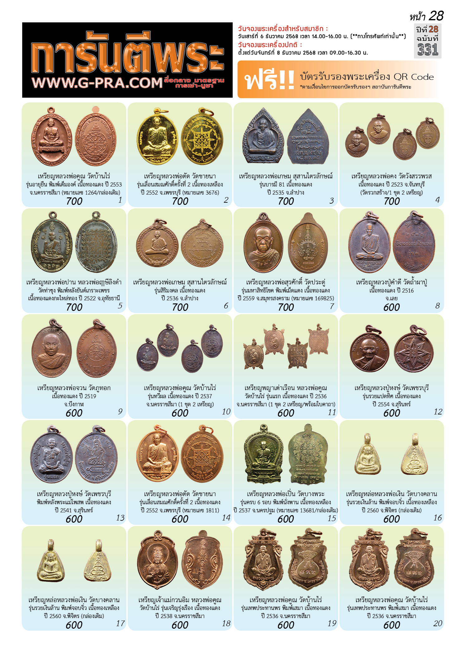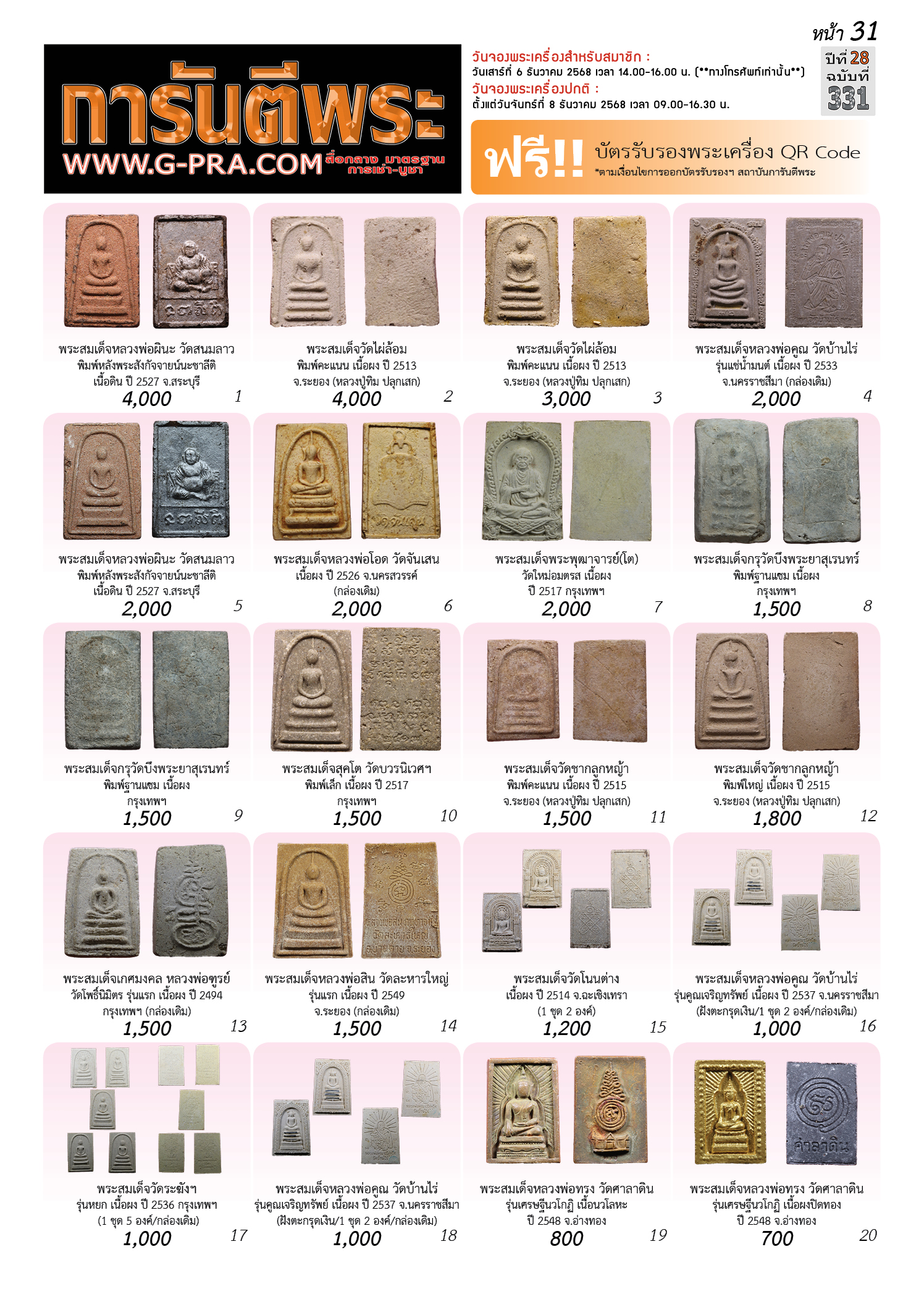 กรุณาเลือกเล่มนิตยสารการันตีพระ :