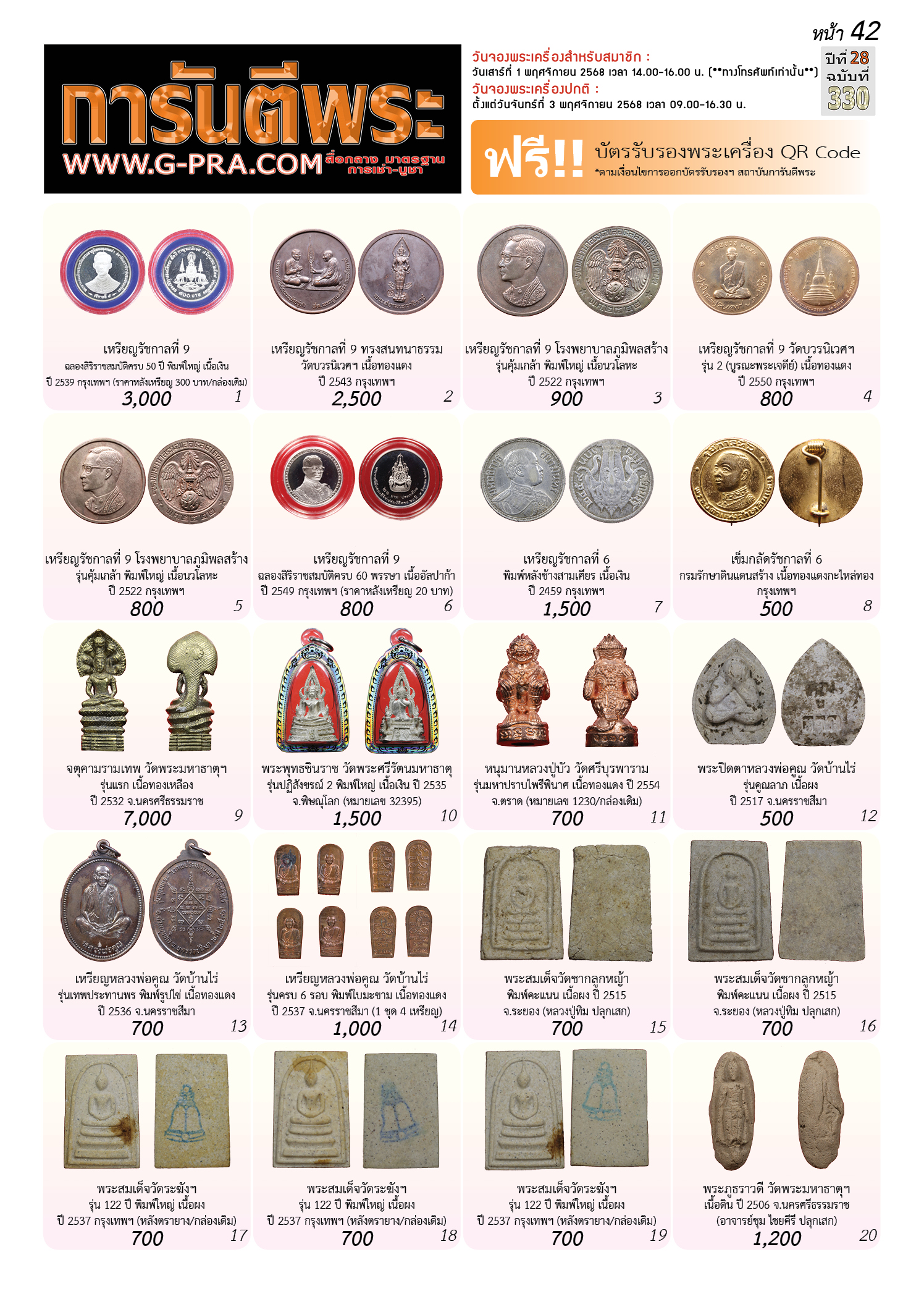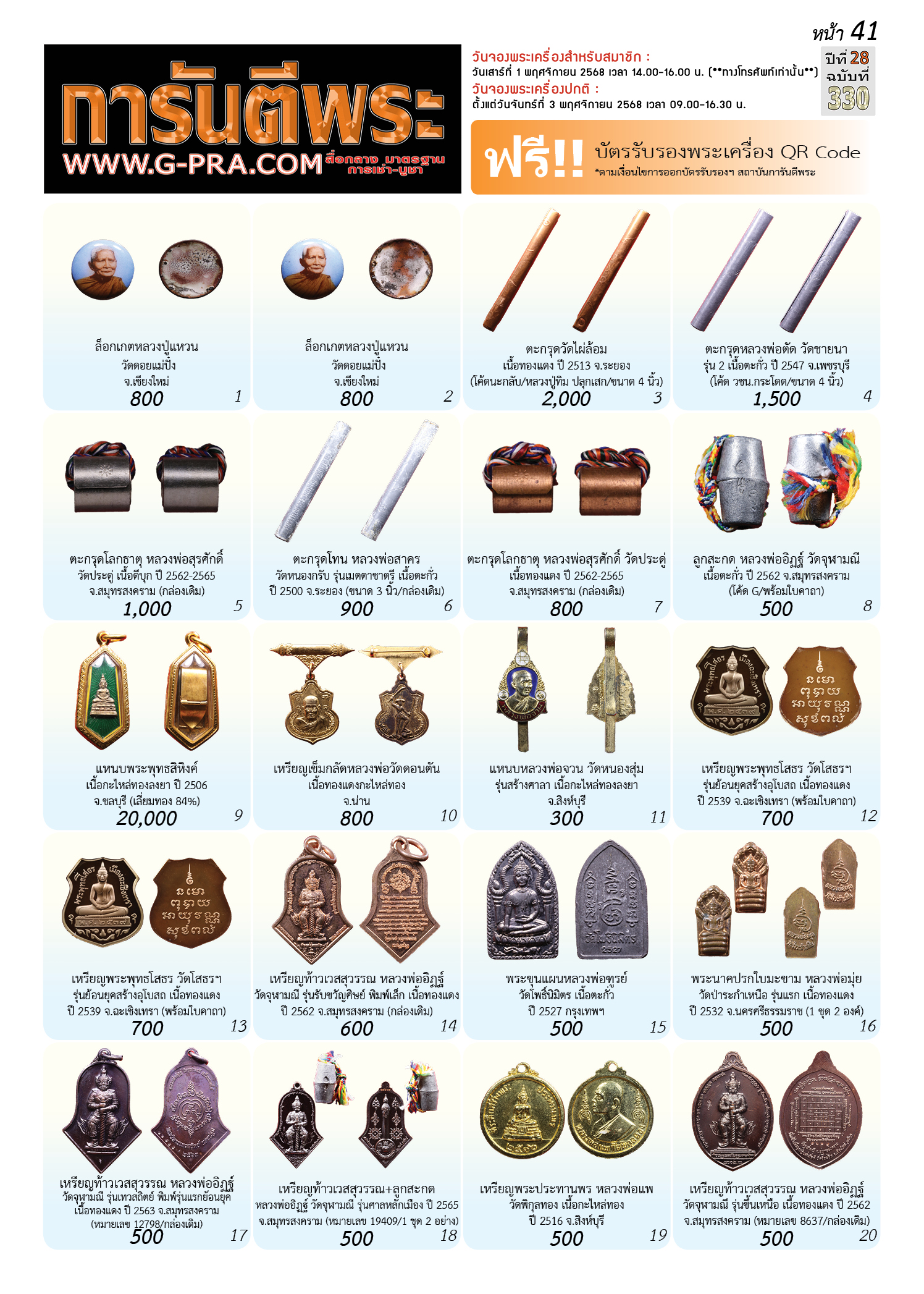 กรุณาเลือกเล่มนิตยสารการันตีพระ :