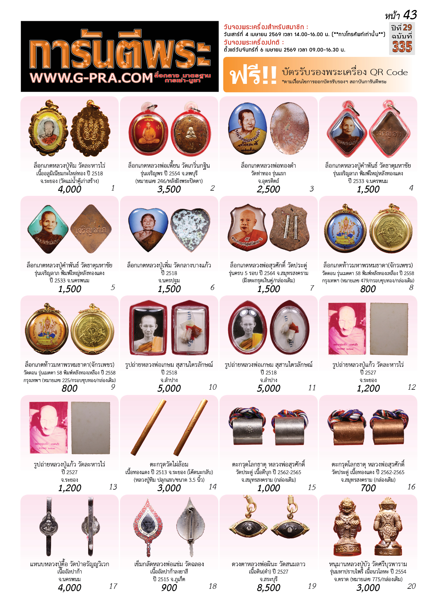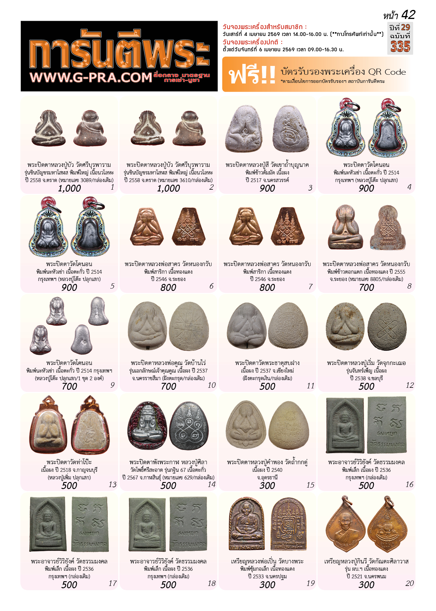 กรุณาเลือกเล่มนิตยสารการันตีพระ :
