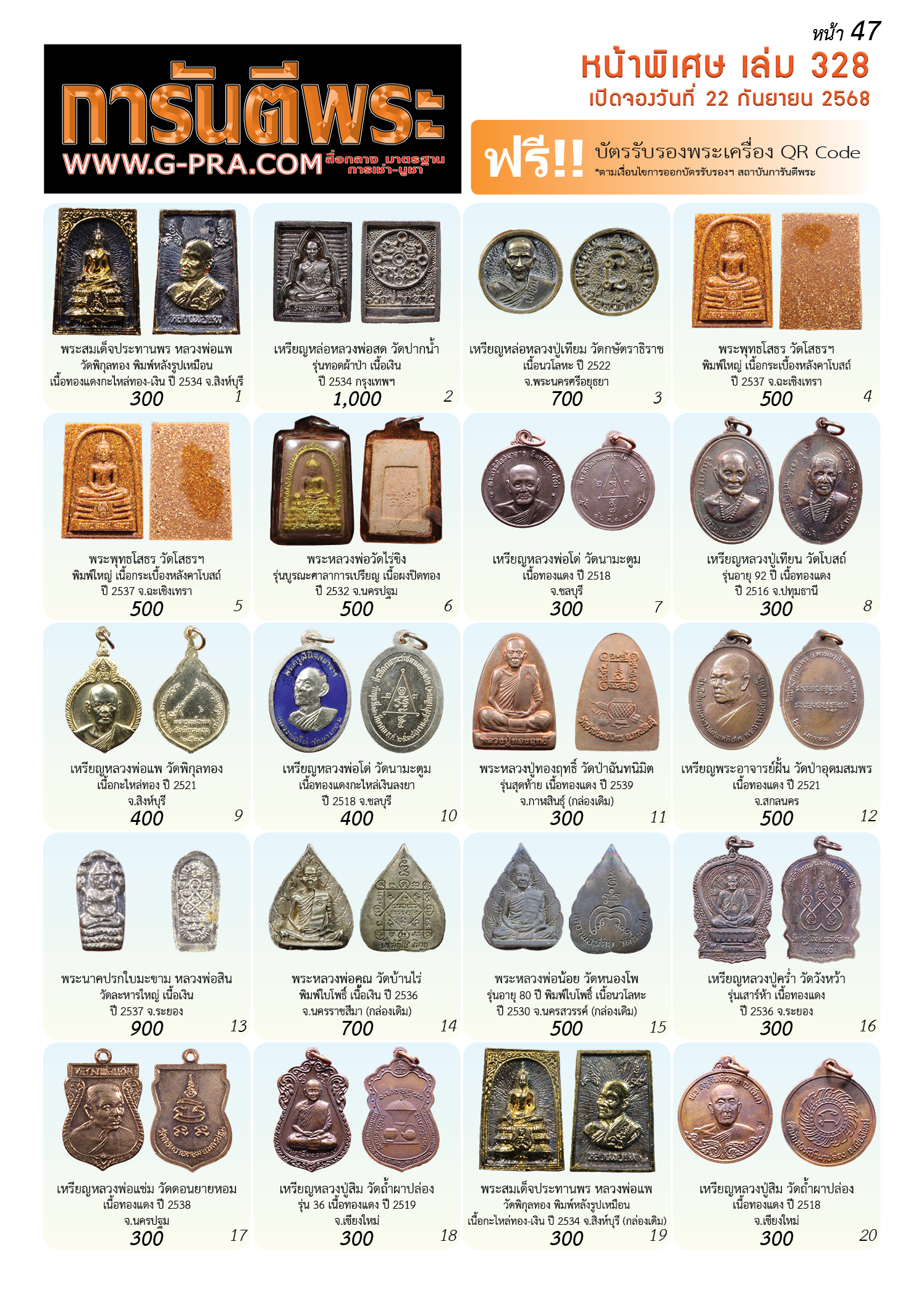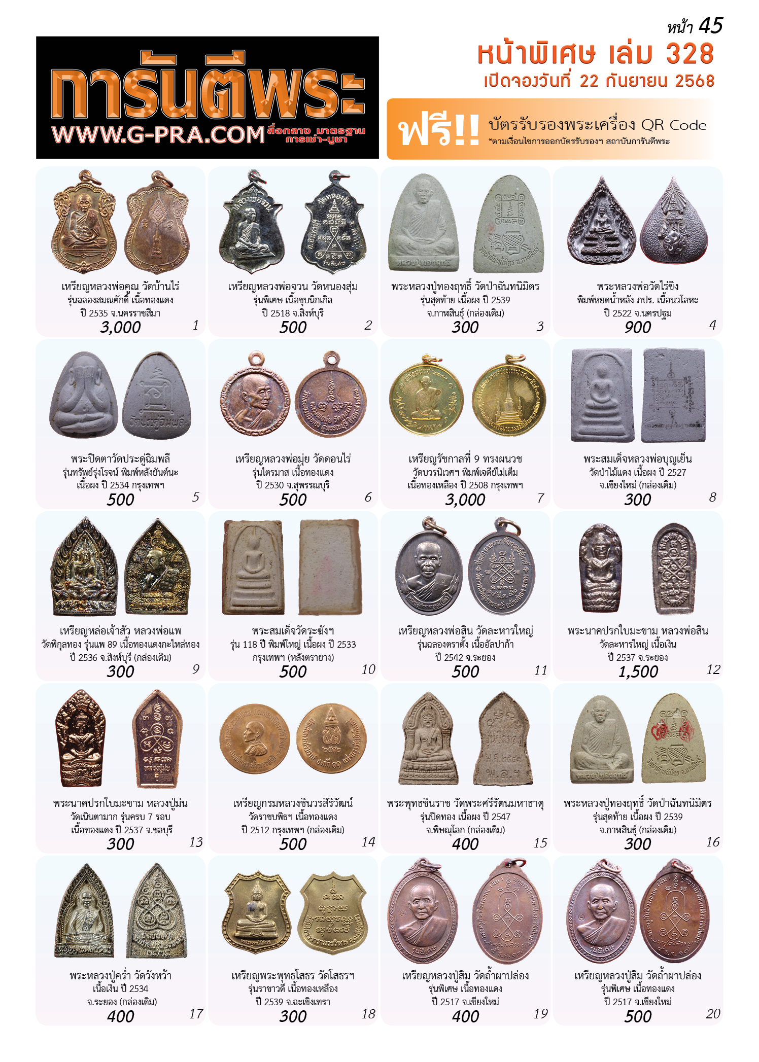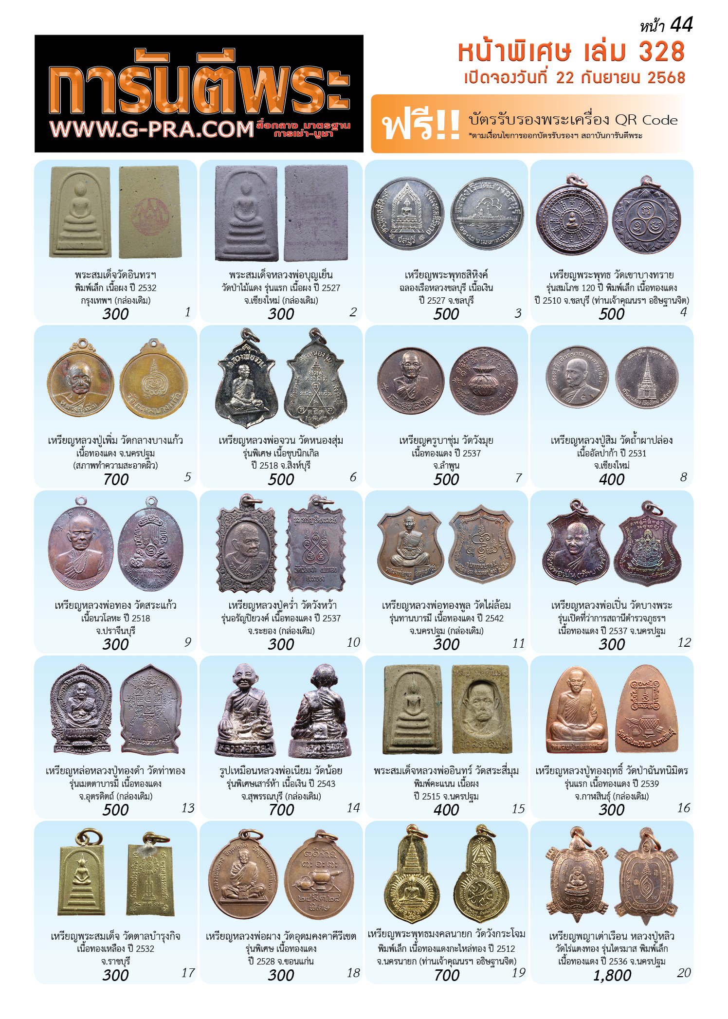 กรุณาเลือกเล่มนิตยสารการันตีพระ :