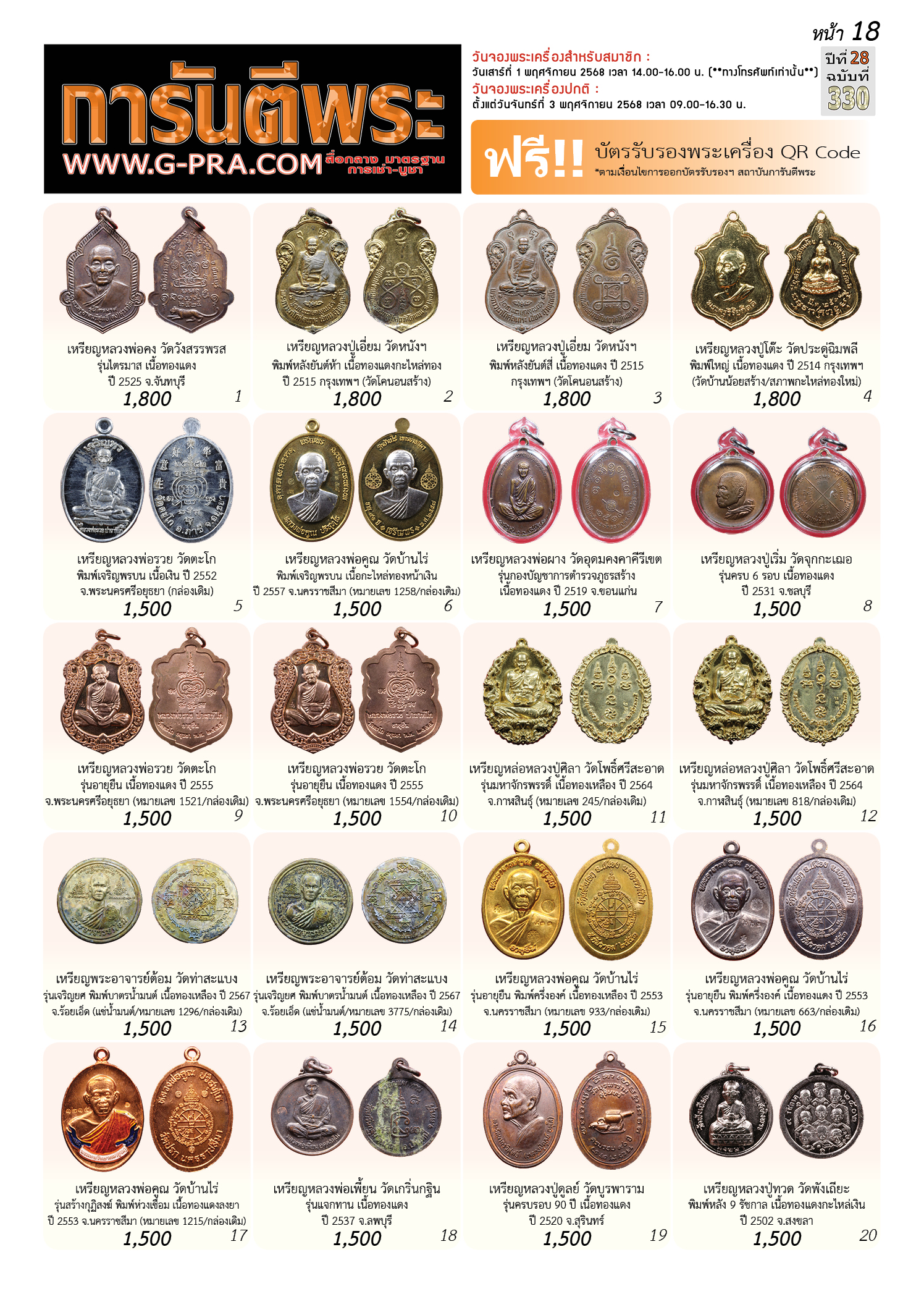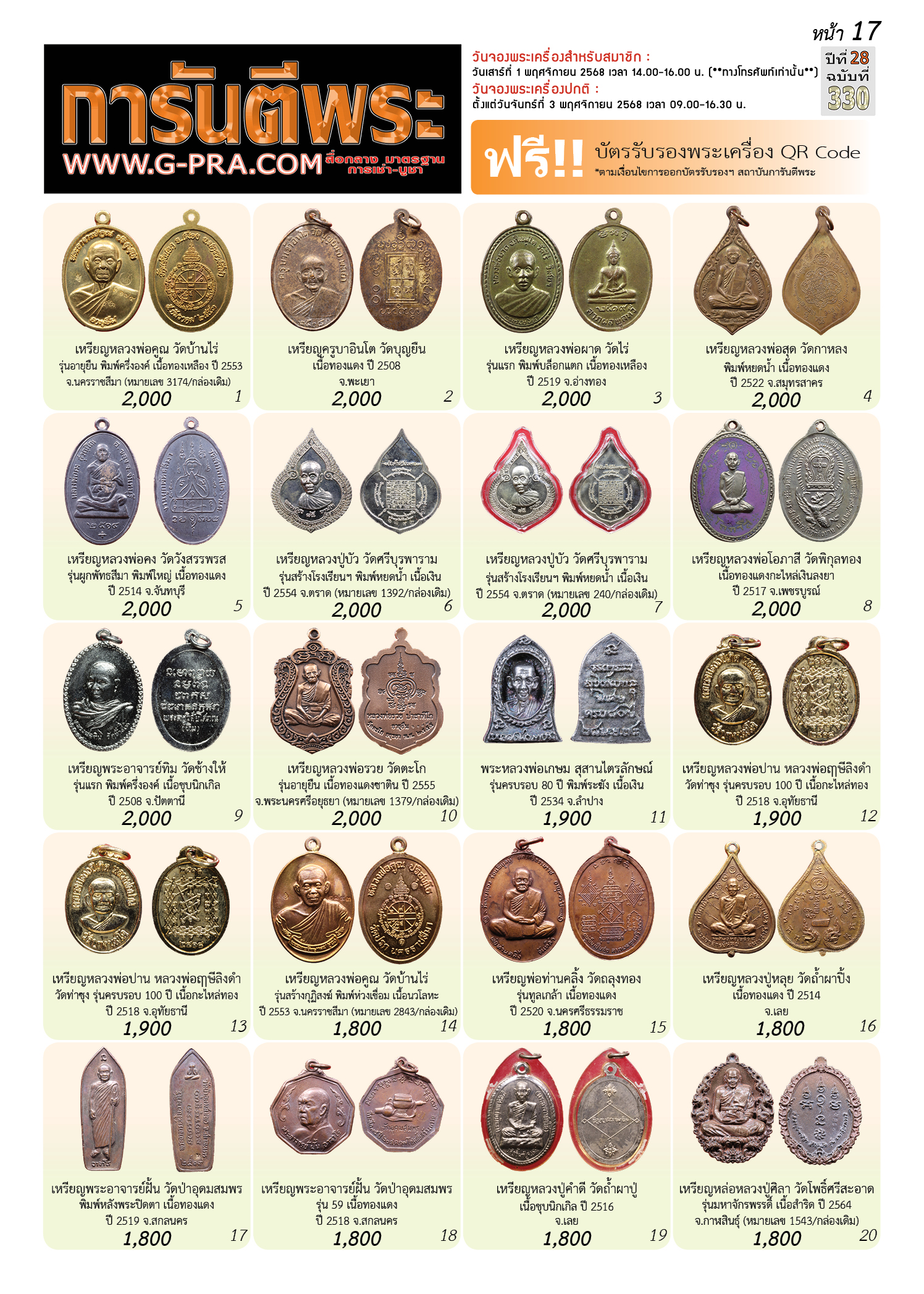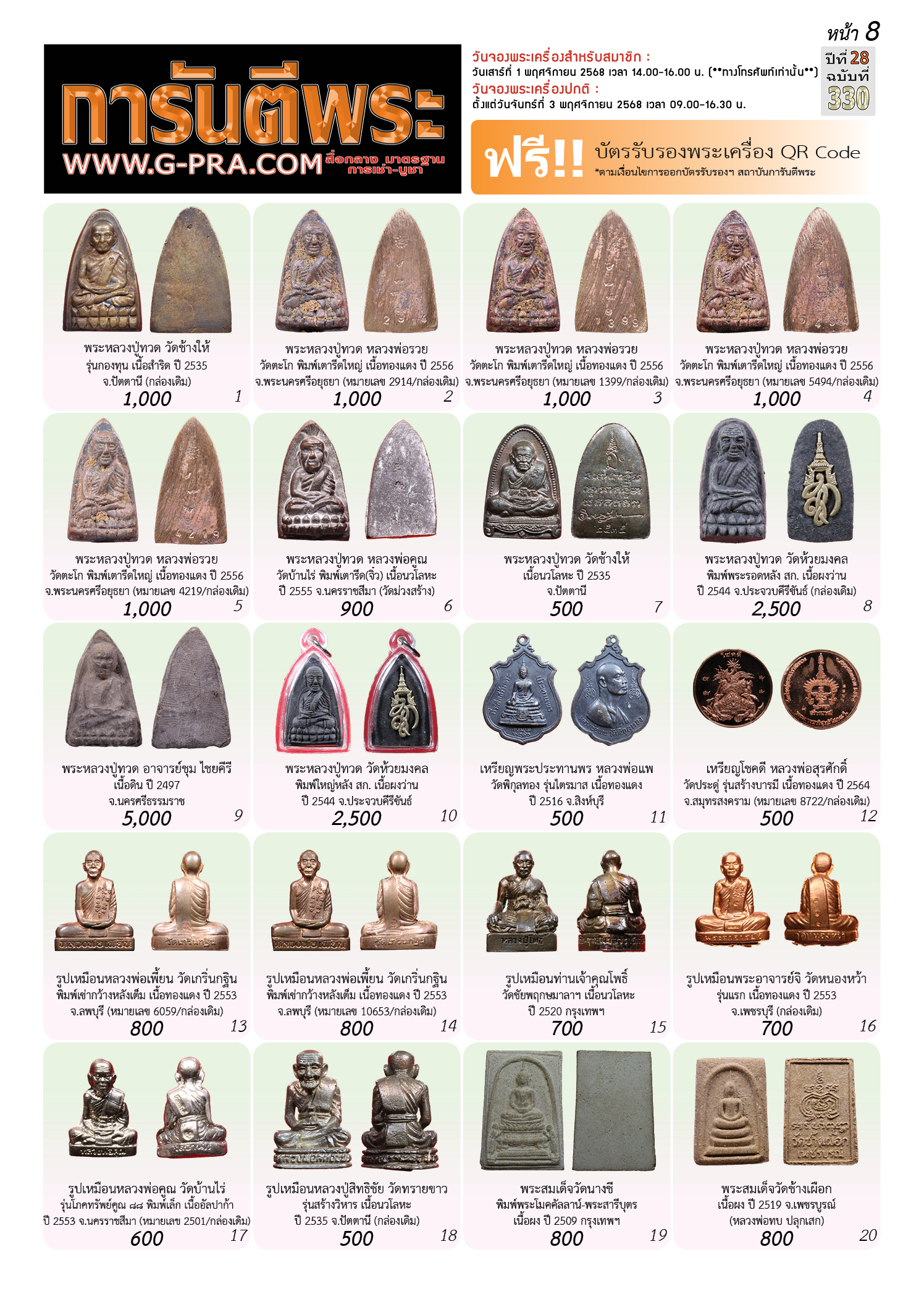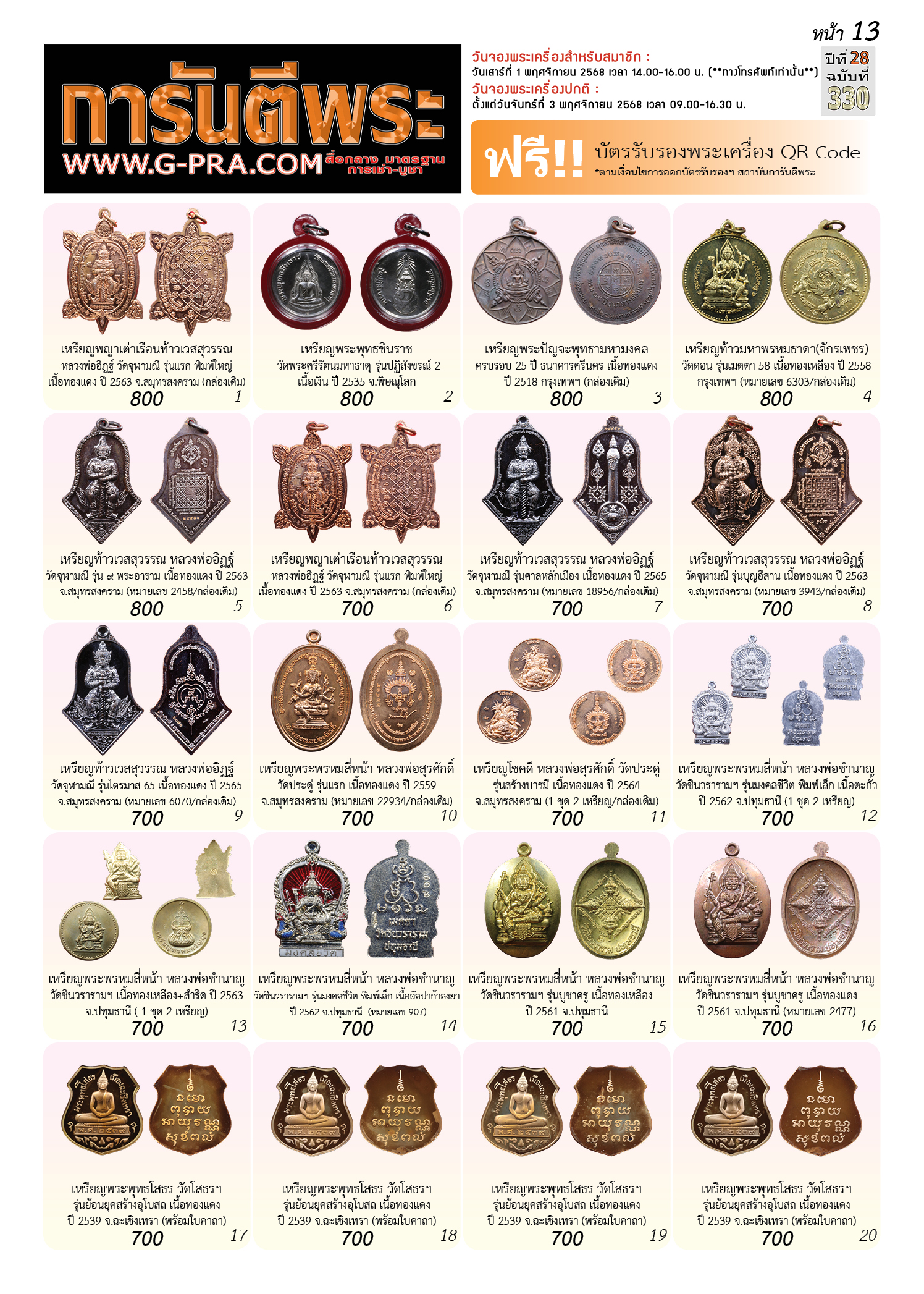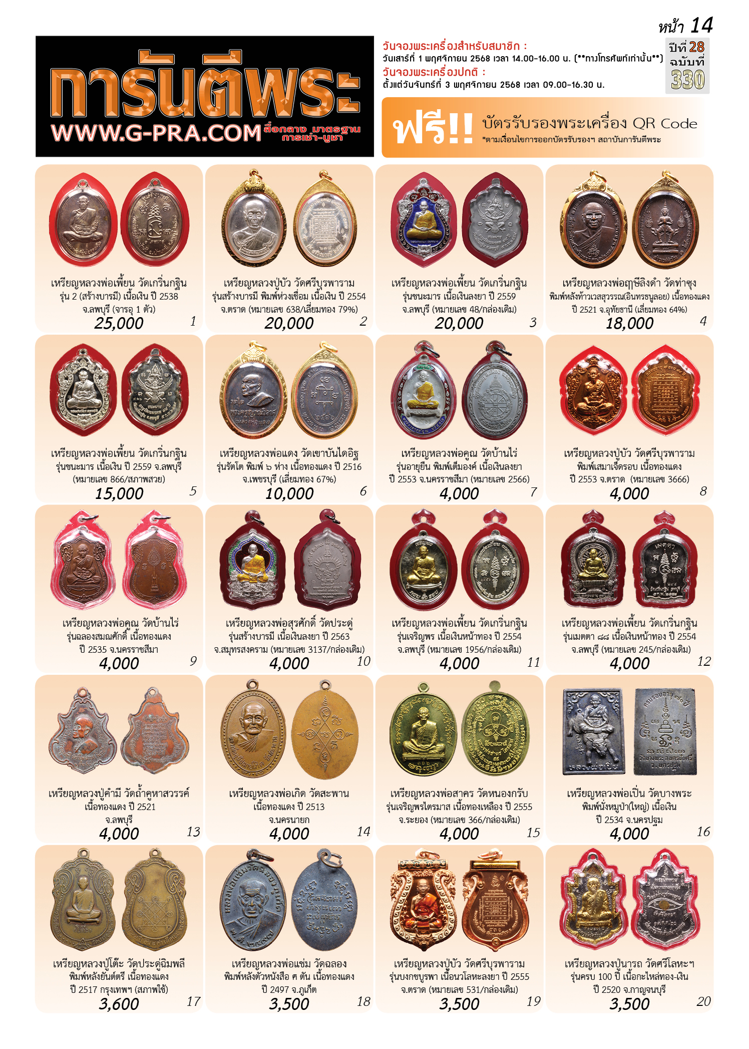 กรุณาเลือกเล่มนิตยสารการันตีพระ :