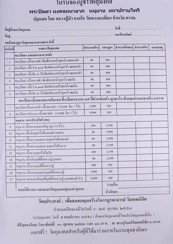 *** จัดส่ง EMS ให้พี่ทันที่ เมื่อผมได้รับพระจากศูนย์จองครับ *** |