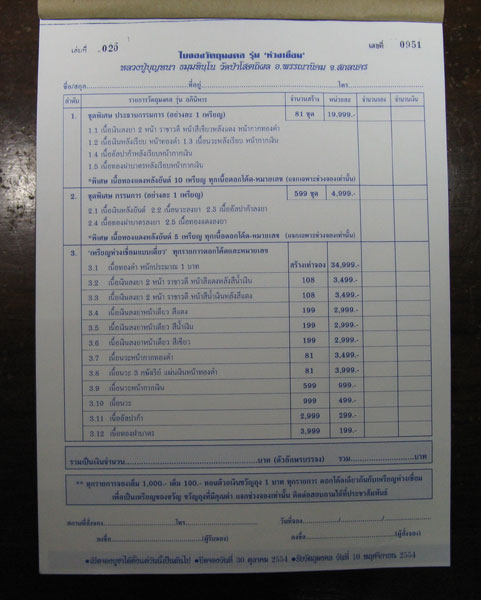 2.เหรียญเนื้อทองฝาบาตร สร้าง 3,999 เหรียญ ราคาเหรียญละ 250.- มีจำนวน 10 เหรียญ