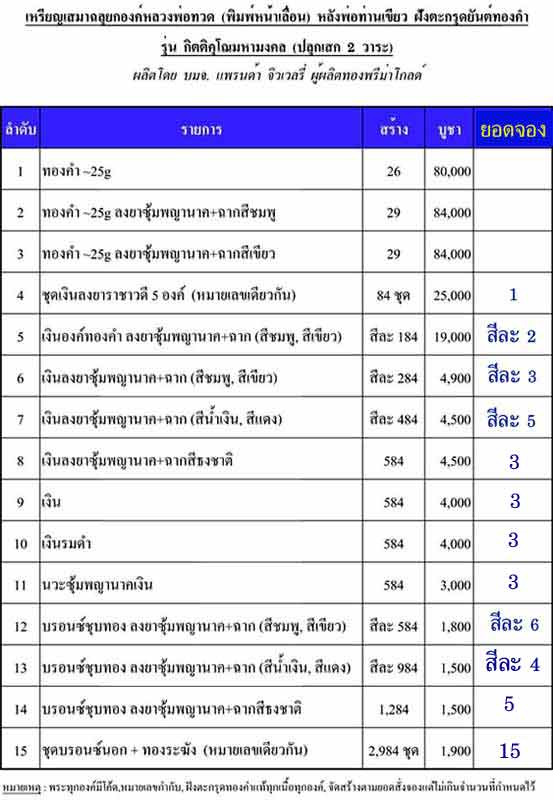 ราคา ณ เวลานี้ยังไม่ได้บวก รีบหน่อยครับ พระสร้างน้อย มีจำนวนจำกัดครับ มาก่อนได้ก่อนครับ..