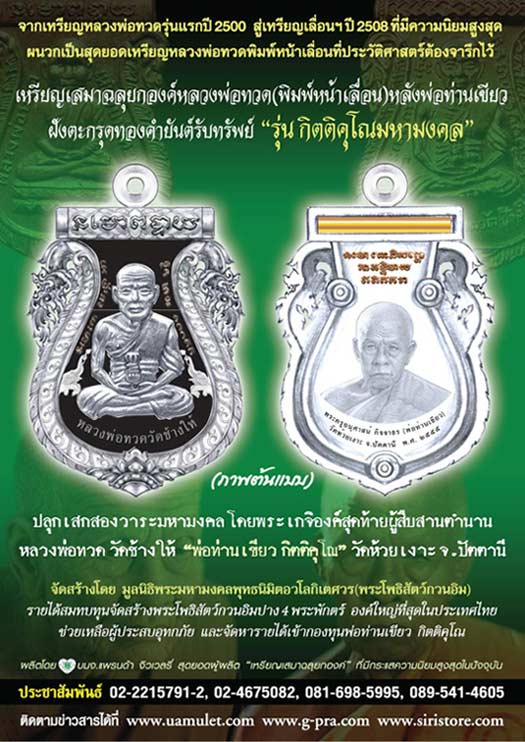 " ทุกๆเหรียญมีตะกรุดทองคำแท้ฝังด้านหลังเหรียญ เหรียญนี้ขึ้นคอ ก็เหมือนดั่งทุกๆ ท่านมีทองคำติดตัว ซึ่งทองคำนั้นมีมูลค่าสูงขี้นทุกวันๆ ย่อมเป็นนิมิตหมายอันดีเปรียบดั่งชีวิตยิ่งเจริญก้าวหน้ายิ่งๆ ขี้นไปครับ "
