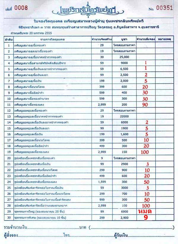 29 ชุดกรรมการใหญ่ (ของสมนาคุณ 25 ชิ้น) สร้าง 99 ชุด ๆละ 6,900 บ. หมด