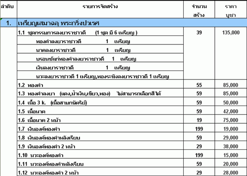 เนื้อทองคำไม่ลงยา สร้าง 55 เหรียญ มี 1 เหรียญ ราคา 190,000 บาท