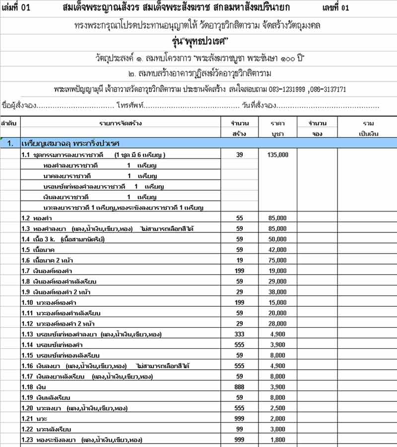 รายการที่ 1.10 นวะองค์ทองคำ จำนวน 1 องค์ ราคาองค์ละ 22,000 บาท