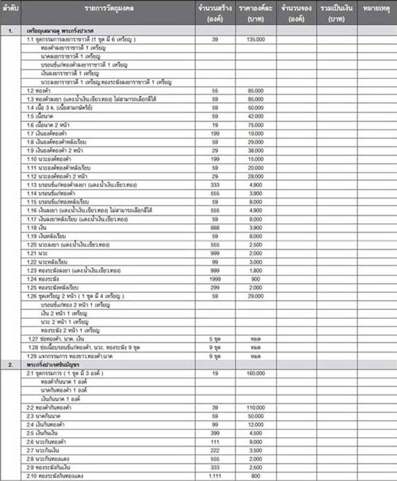 - พระกริ่งปวเรศชินบัญชร เนื้อนวะโลหะก้นทองแดง มี 1 องค์ องค์ละ 2,500 บาท
