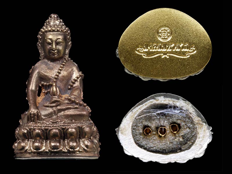 8 พระกริ่งเนื้อนวโลหะก้นอุดผง ฝังตะกรุด (ทองคำ-เงิน-นาค) สร้าง 185 องค์ องค์ละ 2,999 บ. มียอด 5 องค์