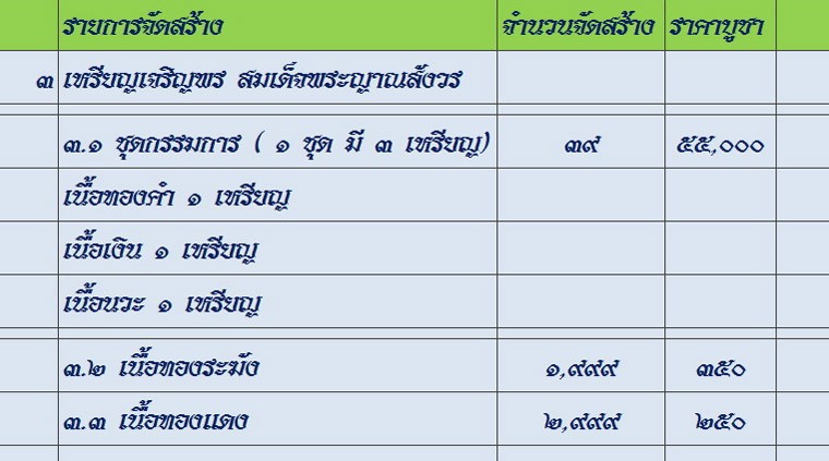 ๑.เนื้อทองระฆัง มี 10 เหรียญ เหรียญละ ๑,๓๐๐ บาท + ค่าจัดส่ง รายการละ ๕๐ บาทครับ