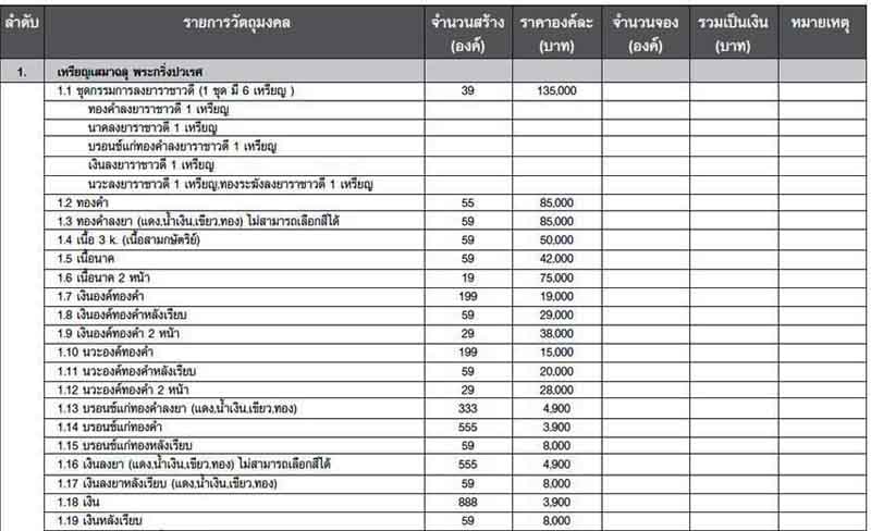 3)เหรียญนวโลหะ จำนวน 1 เหรียญ ๆ ละ 6,000 บาท