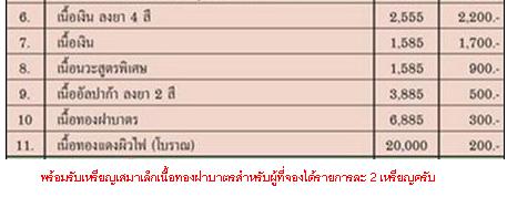 วัตถุประสงค์ของการจัดสร้างเพื่อนำเงินสมทบทุนสร้างโบสถ์ให้เสร็จ ในรุ่นนี้