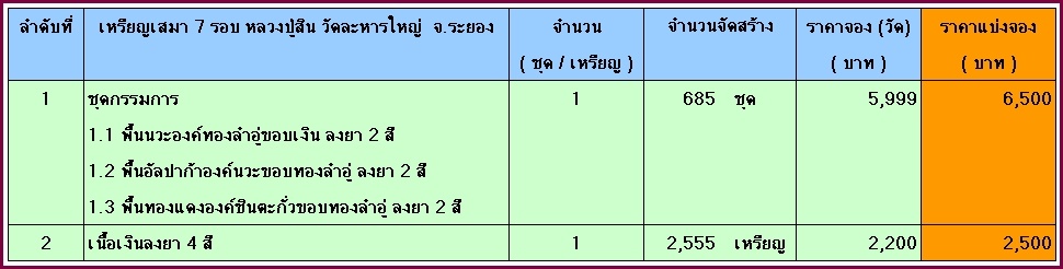 ราคาแบ่งจองตามที่ระบุไว้ในช่องสีส้ม