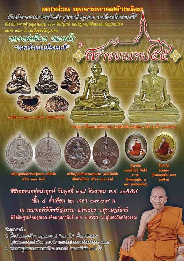 เปิดจองหลวงพ่อท้วม เขมจาโร เทพเจ้าแห่งเมืองคนดี รุ่นสร้างมณฑป ๕๕ วัดศรีสุวรรณ จ.สุราษฎร์ธานี***