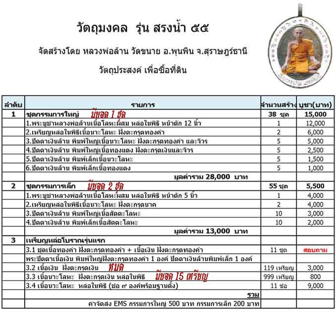 .....โอนเงินภายใน 2 วัน จัดส่งทางไปรษณีย์ รายการวัตถุมงคลทั่วไปเพิ่มค่าจัดส่งEMSครั้งละ 60 บาท