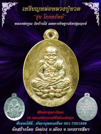 เหรียญหล่อหลวงปู่ทวด รุ่นโภคทรัพย์ หลวงพ่อคูณอธิษฐานจิต ออกวัดม่วง นครราชสีมา (( เนื้อนวะ และ เนื้อทองทิพย์ ))