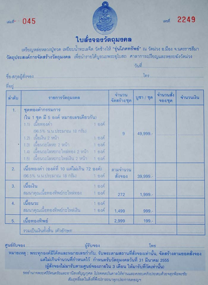 สนใจลงชื่อสั่งจองไ้ด้ในกระทู้เลยครับ หรือโทร สั่งจองที่ นายประเสริฐ วุฒินิมิต 0899381474
