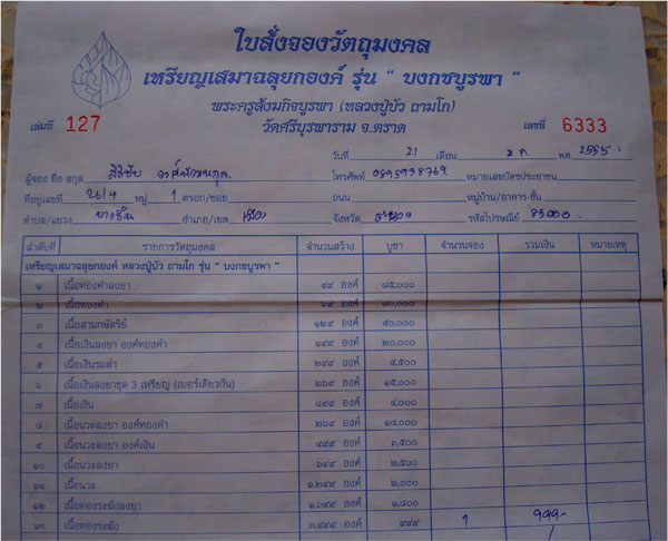 เหรียญเสมาฉลุ หลวงปู่บัว เนื้อทองระฆัง 1 เหรียญ 1650 บาทครับ ใบจองจากคุณลูกรักครับ ได้รับพระจัดส่ง EMS ให้ทันทีเลยครับ