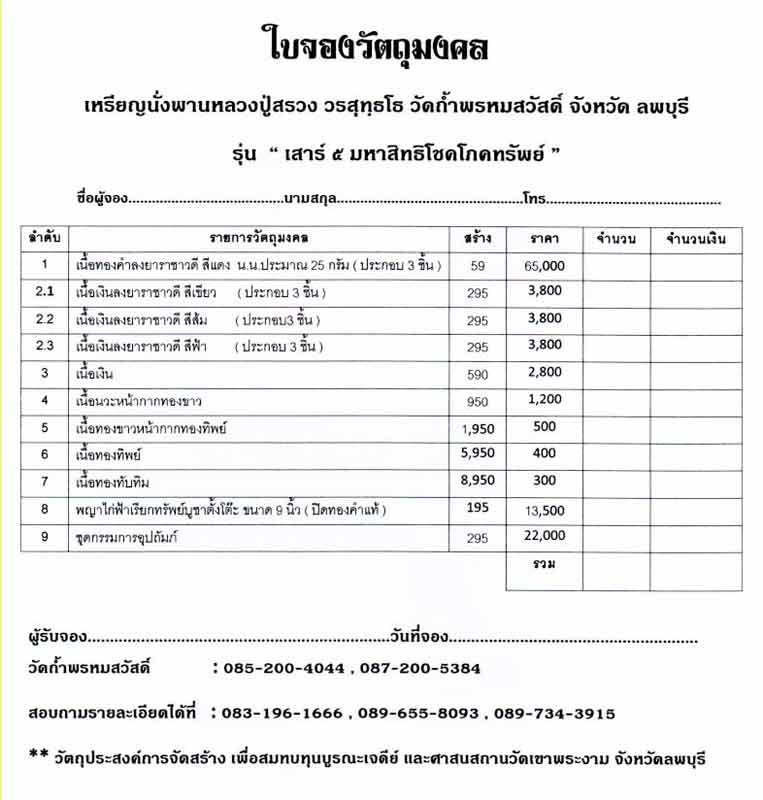 เปิดจองเหรียญนั่งพานลป.สรวง วรสุทุธโธ วัดถ้ำพหรมสวัสดิ์ รุ่นเสาร์ ๕ มหาสิทธิโชคโภคทรัพย์