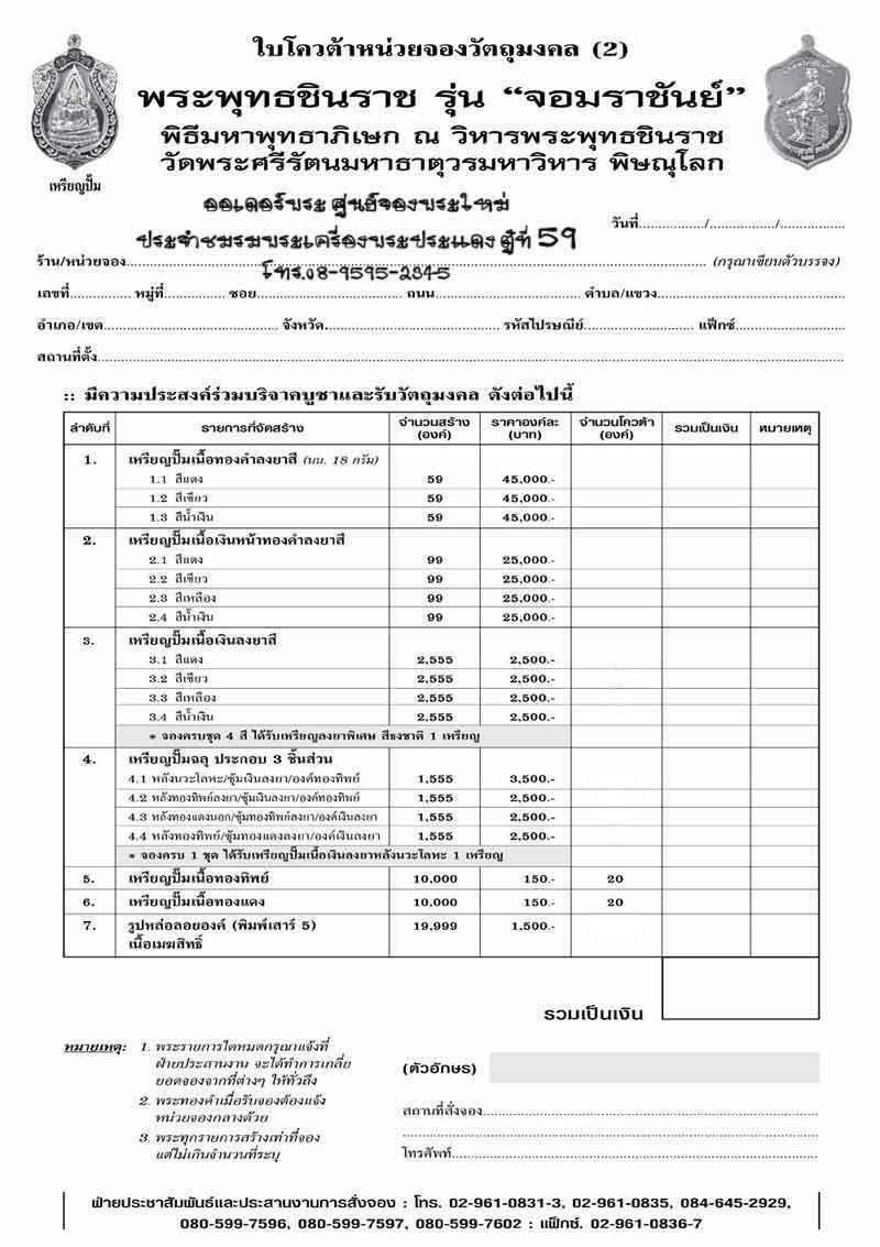 6. เหรียญปั๊ม เนื้อทองแดง ราคาจอง 150 บาท มียอด 20 องค์ + ค่าจัดส่ง รายการละ 100 บาท